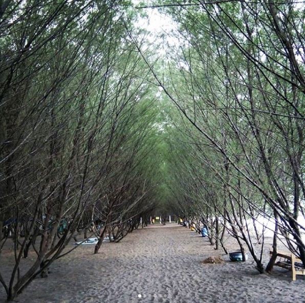 Seperti yang telah disebutkan sebelumnya, pohon pinus adalah ikon pantai ini dan juga alasan mengapa pantai ini dinamai seperti itu. Cemara dapat diterjemahkan menjadi pohon pinus. Dan dengan pohon pinus di sini, kita sebenarnya tidak berbicara tentang pohon pinus biasa seperti yang biasanya digunakan untuk pohon Natal. Pohon pinus di sini istimewa karena merupakan spesies yang tumbuh di ekosistem pantai. Anda dapat melihat bagaimana daun pinus sangat berbeda dari pohon pinus biasa. Pohon pinus di Pantai Cemara ditanam khusus untuk mempercantik pantai. Dan hasilnya sangat fantastis. Saat Anda memasuki area pantai, Anda akan ditemani oleh pohon pinus di sepanjang jalan setapak. Ini pasti tempat romantis yang akan membuat Anda ingin mengeluarkan kamera dan mengambil beberapa foto di sana.