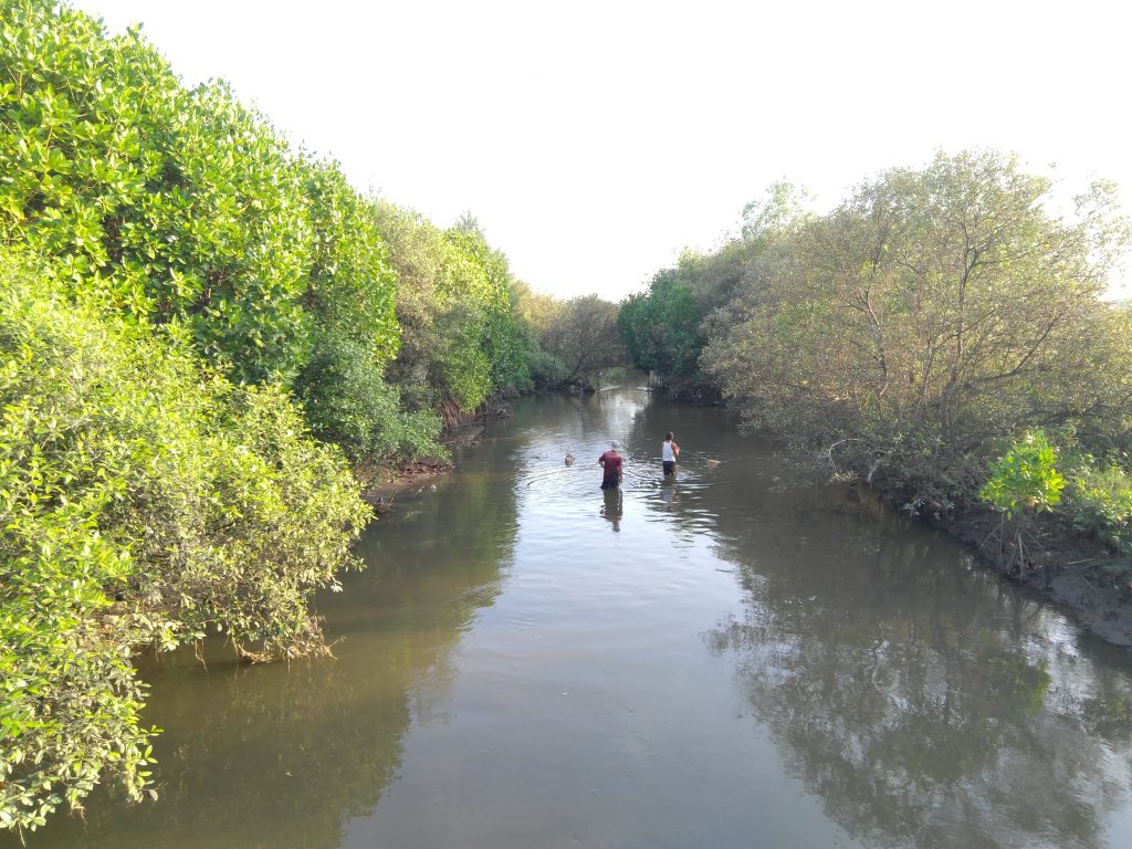 Hutan mangrove dapat ditemukan sebelum Anda memasuki garis pantai. Setelah membayar tiket masuk ke area pantai, Anda harus menyeberangi jembatan kecil. Di bawah jembatan, terdapat sungai berair payau dan di sanalah hutan mangrove tumbuh. Pemandangan di sana sudah cukup dramatis dan Anda mungkin ingin berfoto di sana.
